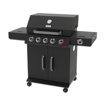 Grătarul pe gaz unic pe piață din seria Yao cu 6 arzătoare cu o putere totală de 19,5 kW și accesorii practice care facilitează prepararea mâncărurilor în aer liber. Patru arzătoare principale cu o putere de 3 kW fiecare asigură o căldură uniformă și o suprafață de lucru mare – ideal pentru grătarul clasic cu porții mai mari. Arzătorul cu putere crescută de 4 kW permite încălzirea rapidă și prăjirea intensă, ceea ce este util pentru preparatele mai exigente. În plus, arzătorul lateral infrared (3,5 kW) este un instrument excelent pentru prepararea perfectă a fripturilor – permite obținerea unei cruste crocante și a unui interior suculent datorită temperaturii foarte ridicate. Modelul este echipat cu un grătar din fontă cu o suprafață de lucru mare și o grătar de încălzire din oțel inoxidabil de înaltă calitate, durabil și rezistent la coroziune și deteriorare.