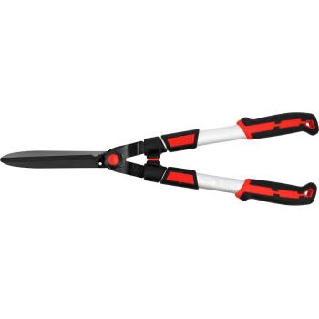 Foarfecele telescopice pentru gard viu, cu reglare de lungime de la 660 la 825 mm, permit tăierea confortabilă a gardurilor vii la diferite înălțimi. Lamele simple de 220 mm sunt realizate din oțel rezistent la coroziune 65 Mn, acoperite cu PTFE în partea superioară, asigurând o tăiere precisă și curată a ramurilor de până la 6 mm în diametru, facilitând îngrijirea zilnică a arbuștilor și formarea gardului viu.