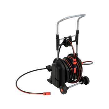 Funcțional, ușor de utilizat, un set de grădină care aduce ordine și confort în jurul casei. Furtunul de 25 de metri, plasat pe un cărucior solid cu roți mari, asigură mobilitatea și permite economisirea spațiului în timpul depozitării furtunului.