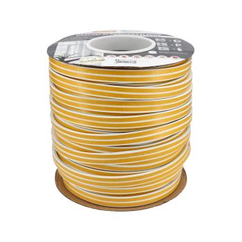 Garnitură autoadezivă pentru ferestre și uși tip D, culoare albă. Dimensiuni 9 x 7,4 mm. Ambalată pe tambur de 100 m (2 x 50 m). Fabricată din cauciuc EPDM, caracterizat printr-o rezistență foarte bună la condițiile meteorologice, radiațiile solare UV, oxigen sau apă. Au un strat autoadeziv armat cu plasă din fibră de sticlă. Garniturile autoadezive oferă o protecție eficientă împotriva frigului, vântului, căldurii, zgomotului, ploii sau insectelor. Permit economii de energie de până la 35%. Concepută pentru utilizare în goluri de 3,0~7,0 mm. Se utilizează pentru ferestre și uși și alte lucrări din lemn.