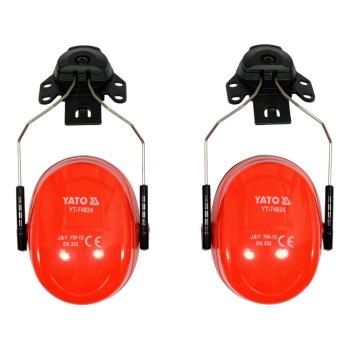 Căști pentru urechi YT-74624 cu suport pentru cască. Adaptorul pivotant permite atașarea la căști cu o lățime a fantei de cel puțin 25 mm. Se potrivește căștilor YATO de la YT-73970 pana la YT-73975 (distanță de 29 mm) și VOREL de la 74190 pana la 74195 (distanță de 31 mm)